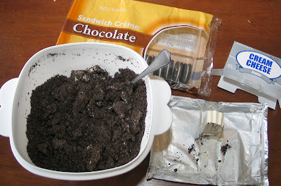 Start with a package of sandwich cookies, any flavor. Wouldn't peanut butter ones be yummy? I think I'm going to try the mint ones next time I make them.
